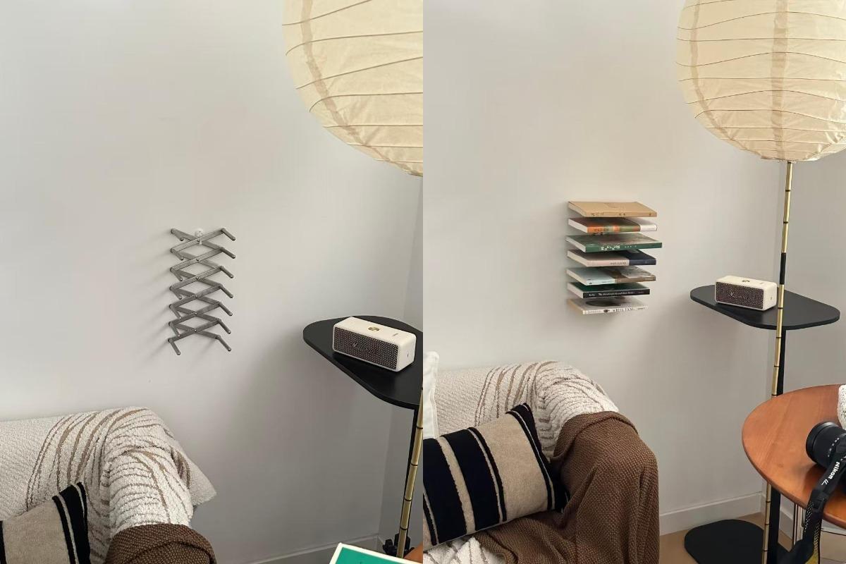 老妈看到后说根本不需要买,他直接从橱柜里拿出没用的不锈钢碗架,再找一个无痕钉固定好,放上书本,这效果绝绝子,和专门买的根本没区别。