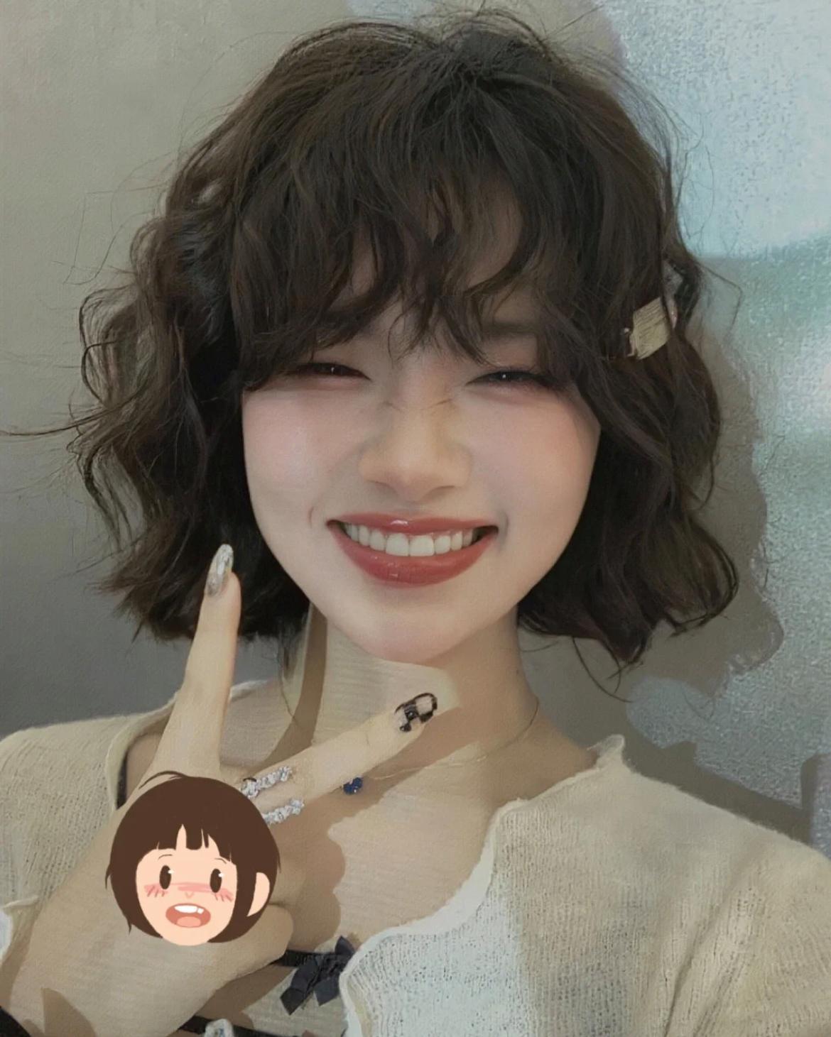 气垫烫 短款烫发更适合发质比较软塌的妹子,因为它剪出来的时候会让发型更加的蓬松,自带一种蓬松效果,会更加有型,而且比较容易打理。