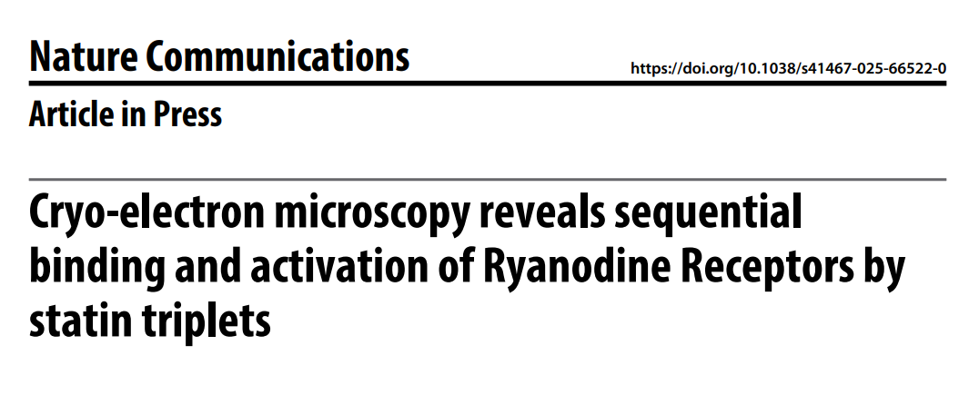 参考文献: Molinarolo, S., Valdivia, C.R., Valdivia, H.H. et al. Cryo-electron microscopy reveals sequential binding and activation of Ryanodine Receptors by statin triplets. Nat Commun (2025).