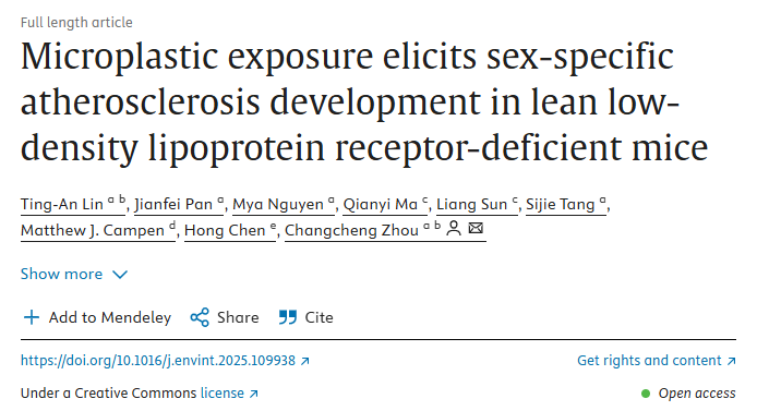 这项研究不仅首次在严格控制条件下证明了微塑料对动脉粥样硬化的直接致病作用,还揭示了性别差异这一重要维度,为未来精准预防心血管疾病提供了新视角。