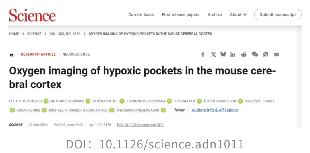 研究团队利用绿色增强纳米灯笼(GeNL)这一新型生物发光氧气指示器,在清醒、自由活动的小鼠体内,实时监测大脑组织Po₂的变化情况。