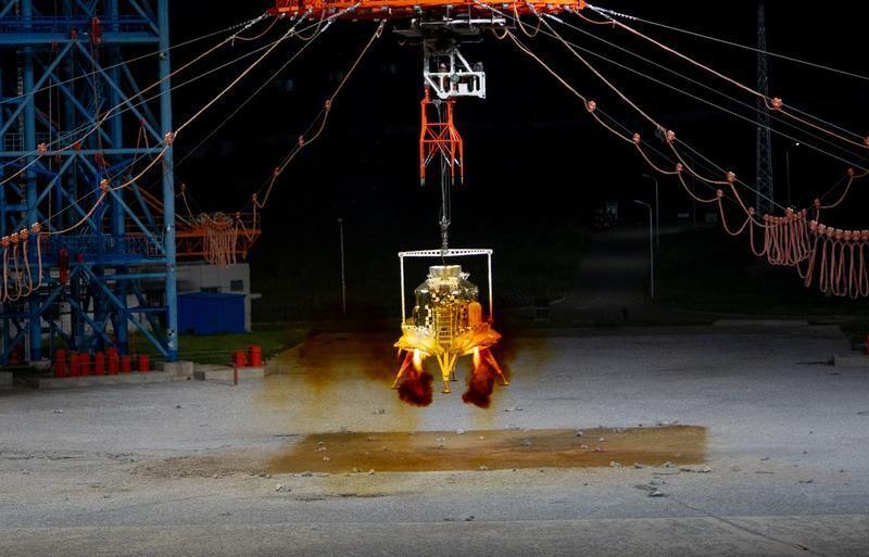 揽月月面着陆器着陆起飞综合验证试验过程,可看到发动机处于工作状态