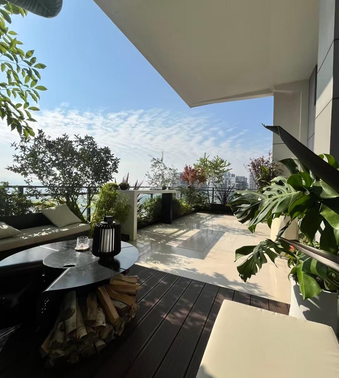第四代住宅的核心卖点就是“层层退台、户户庭院”。虽然说每一家都有超级大的挑高露台,但这也刚好严重影响了室内的通风采光,露台上茂密且高大的绿植完全就是自然光和自然风的屏障。