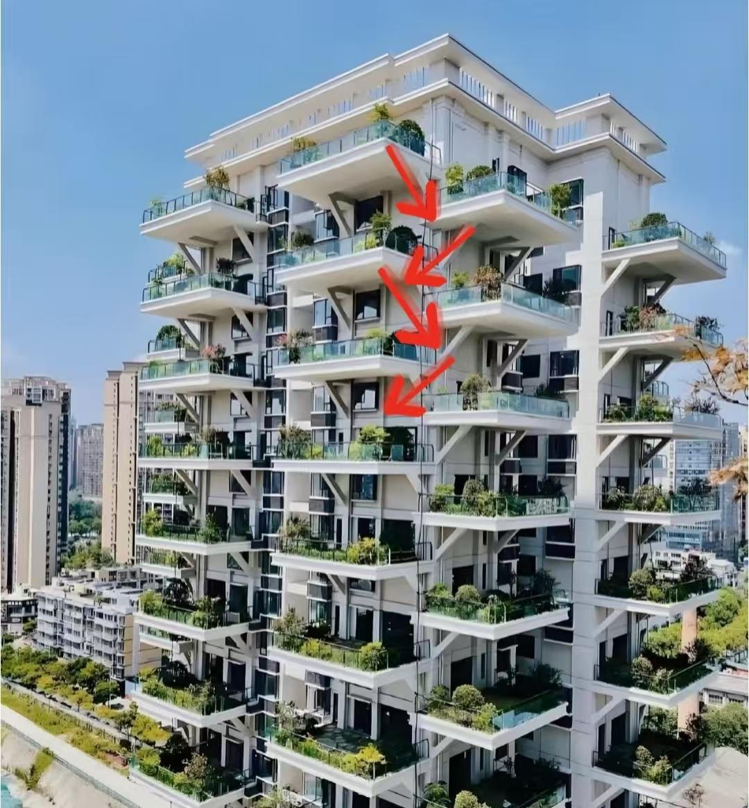 而且,层层退台形成的立体建筑格局,也为攀爬提供了便利,万一邻居中有不坏好心的人,是可以直接爬到别人家的,这种房子的防盗压力远远大于普通住宅。