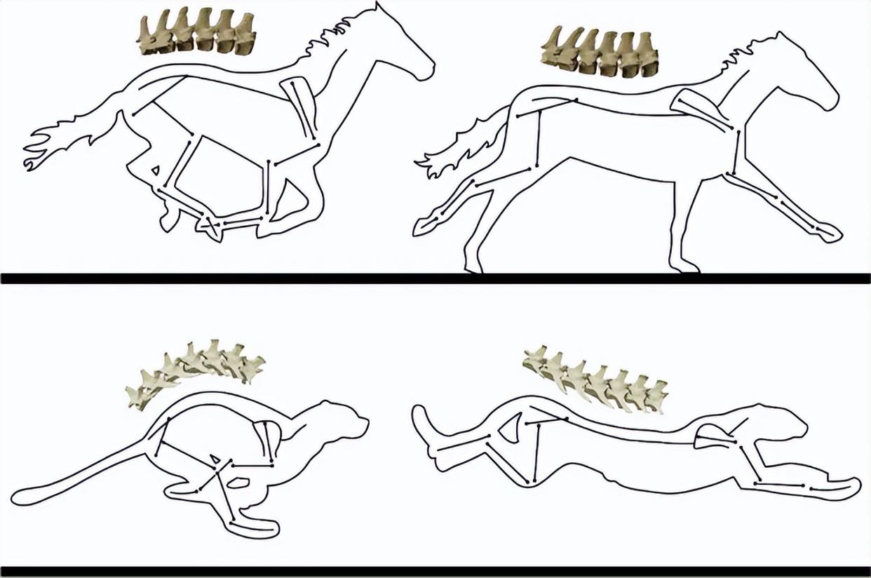 当你骑马时,你其实是坐在一个稳固的生物桥梁上。相比之下,猎豹为了追求极致的速度,演化出了一种极度灵活的柔性脊柱。在奔跑时,猎豹的脊背会像弹簧一样大幅度弯曲和伸展,以增加步幅。