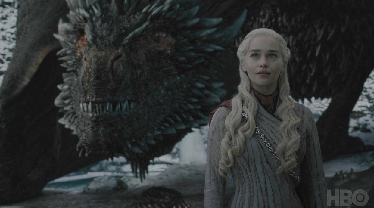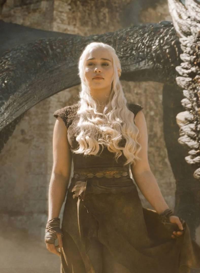 本来应该在权游里训龙的龙妈,一转眼在逗小狼。