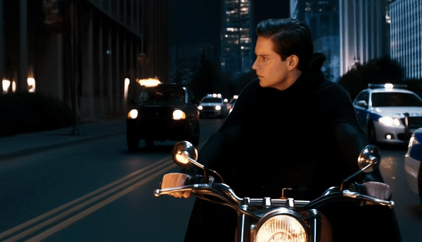 上一秒还在拯救世界的蜘蛛侠,下一秒就骑上机车了。