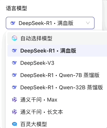 百宝箱一口气接入了四种 DeepSeek 模型:DeepSeek-R1 满血版 660B、DeepSeek-R1 蒸馏版 32B、DeepSeek-R1 蒸馏版 7B、DeepSeek-V3。