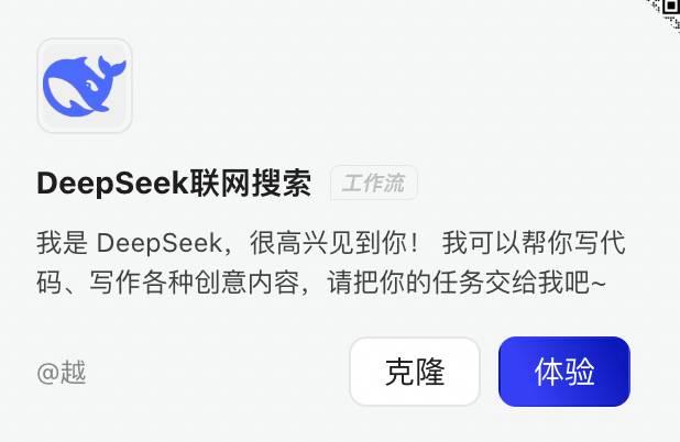 也可以直接在「应用广场」搜索到可以联网的 DeepSeek「工作流」。