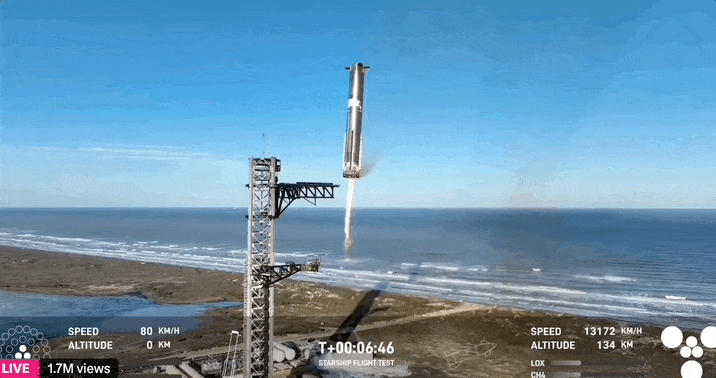 这一次,SpaceX 没有让蹲守直播间的人们失望,再次实现「筷子夹火箭」,表现比五飞更稳、更丝滑。其实起飞 3 分多钟时,就宣布了助推器将返回发射场进行捕获尝试。