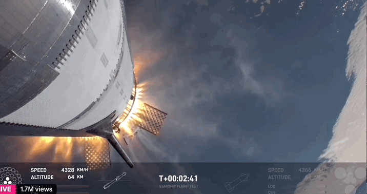 但这一次,没能验证星舰二级再入大气层的表现,直播十几分钟就结束了。