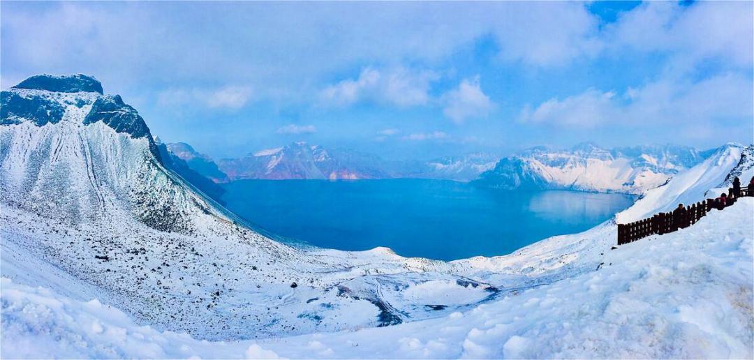 长白山天池的湖面在冬天能够结1.2米厚的冰,但是这里也有几条水温在42℃的温泉带。长白山天池南北长度为4850米,东西宽度为3350米,平均水深为204米,整个天池的面积为9.82平方公里。蓄水量是杭州西湖的145倍。