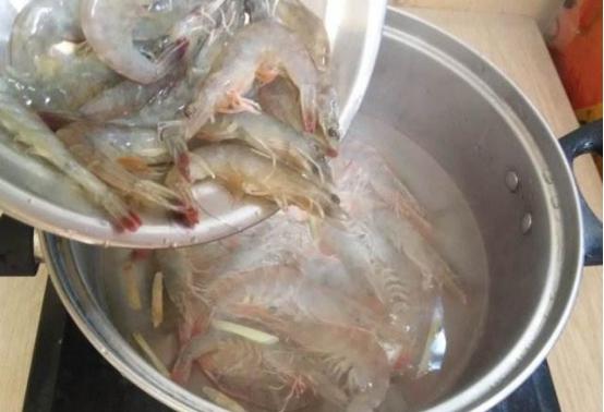 做水煮虾,记得要用冷水下锅,不能用热水,热水温度太高,虾肉与热水接触的一瞬间,就会让其肉质紧缩,那么煮出来的虾肉,口感就不够嫩滑。