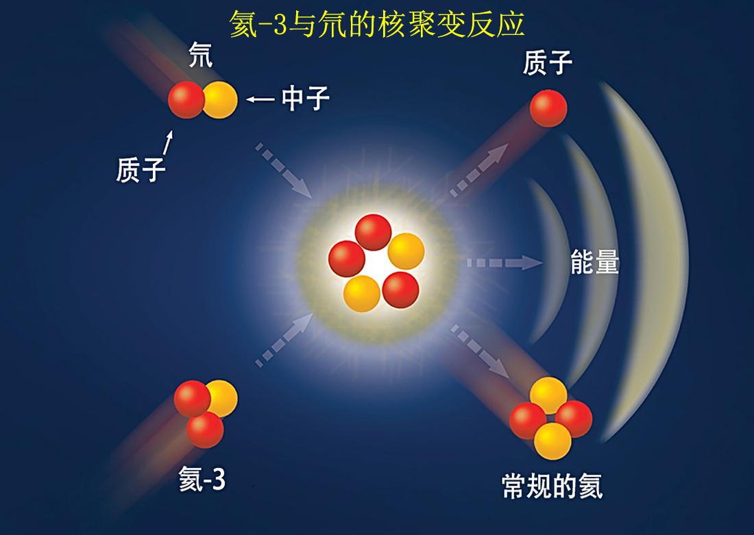 虽然氘和氚的核聚变反应要比核裂变反应更加清洁很多,但仍然会产生中子辐射。而如果采用氦-3,无论是氦-3之间的反应,还是将其与氘和氚都不会产生中子辐射,并且能够产生更多的能量。因此,氦-3可谓是完美的核聚变燃料。